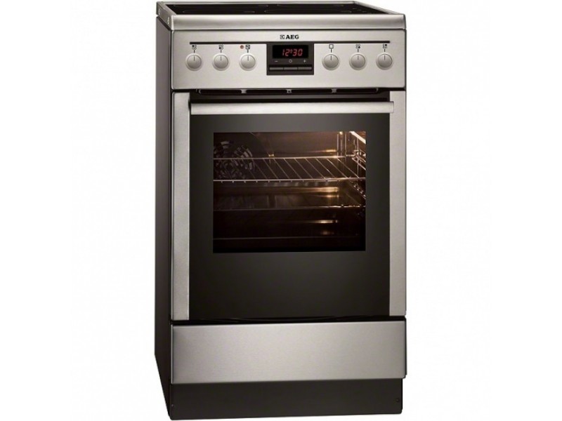 Индукционная плита со стеклокерамикой, откидной гриль, 50см шириной, нержавеющая сталь c Anti Finger Print, мультифункциональная электрическая духовка с откидывающимся грилем, электронное управление с отключением духовки и программированием отложенного старта, защита от детей, 4 индукционные зоны, направляющие из нержавеющей стали, эмаль лёгкой очистки, термостат, освещение духовки, ящик для хранения противней, легкосъёмное внутреннее стекло