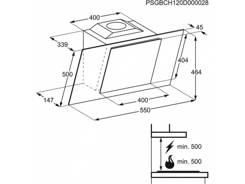 конструкция наклонная, монтаж настенный, управление кнопочное, производительность вытяжки 605 м³/ч, ширина 55 см