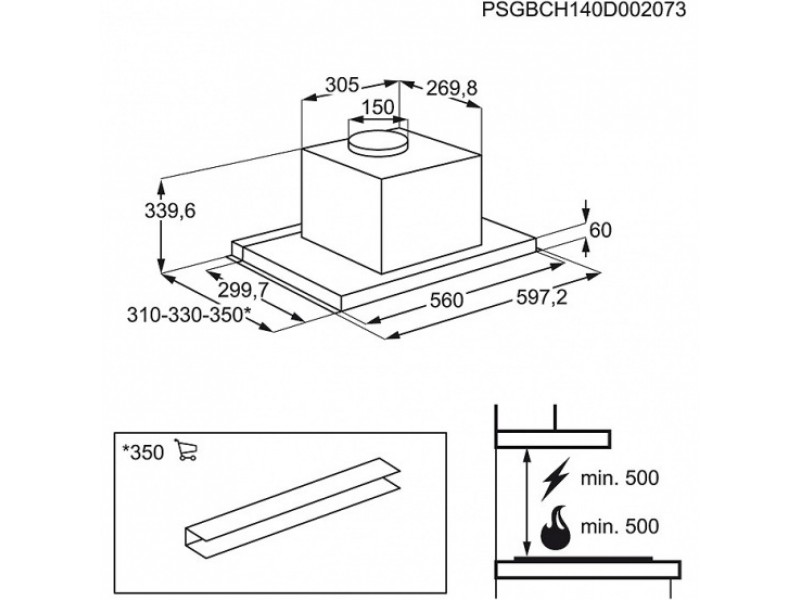 | Минимальная производительность отвода | 272 куб. м/ч |