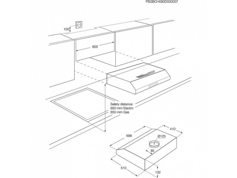 монтаж для встраивания, управление механическое/слайдерное, производительность мотора 225 м³/ч, ширина 59.8 см