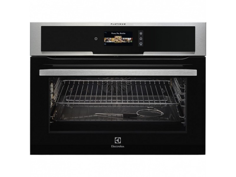 электрическая духовка, нержавеющая сталь c Anti Finger Print, сенсорное управление, цветной ТФТ-дисплей, электронное регулирование времени и температуры, таймер с подачей звукового сигнала, автоматическое отключение духовки, 110 автоматических рецептов (по весу/с термощупом), 90 рецептов, направляющие из нержавеющей стали Easy Entry, пиролитическая очистка