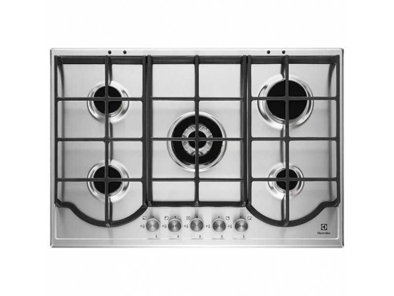 Газовая варочная поверхность, 3 чугунных держателя, газконтроль варочной поверхности, интегрированный автоподжиг варочной поверхности, конфорки: газовая, средней мощности, газовая, высокой мощности, газовая, с тройным рядом пламени, газовая, средней мощности, газовая, стандартной мощности,